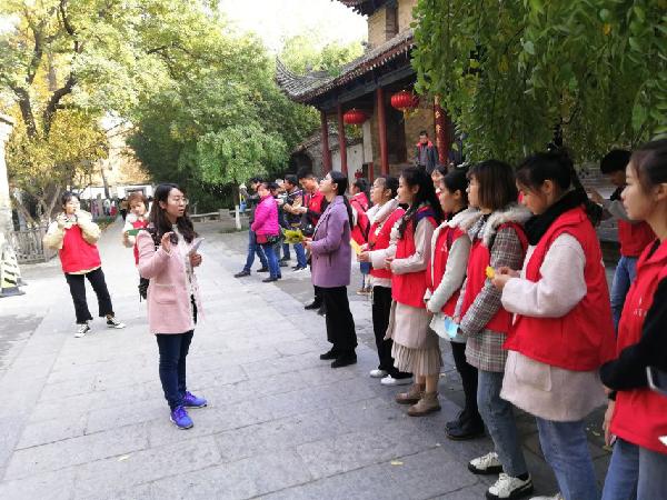 在小雁塔景区,樊老师为大家讲解了小雁塔的相关历史,如著名的“三离三合”、“雁塔晨钟”,不仅讲到了唐朝建塔的意义,还讲到小雁塔在抗战时期所发挥的作用,将大家心中的爱国情怀提升起来。