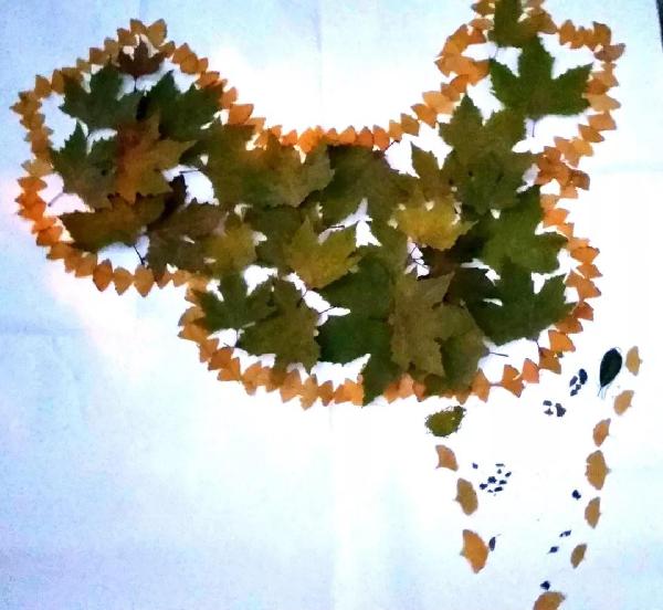 在小雁塔景区有很多的落叶,志愿者们组成小组纷纷捡起地上的树叶,有的组拼画出一个完整的中国地图,有的组拼画出志愿服务的标志,还有的组拼画出笑脸。在小组配合的活动中,把对祖国的热爱落到实处,把团队精神不断提高。