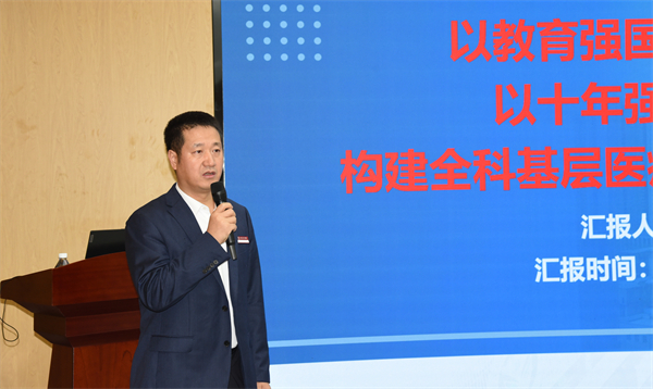 会上,全科医学院院长于照祥作题为《以教育强国战略为纲领 以十年强校为目标 构建全科基层医疗人才培养新高地》学科专业工作报告,从政策引领、特色优势、未来展望等六个方面系统阐述了学院全科医学学科的发展逻辑与实践成效。