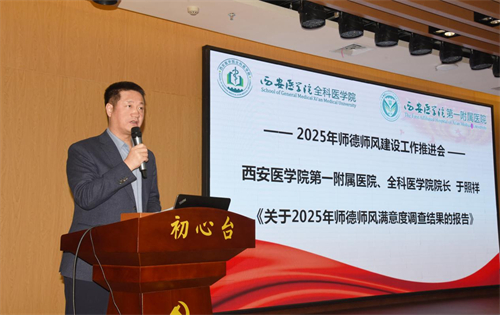 西安医学院第一附属医院、全科医学院院长于照祥作《关于2025年师德师风满意度调查结果的报告》。本次调查于10月13日至31日开展,覆盖本科生、研究生、住培医师等各类学生群体。调查聚焦教学态度、职业素养、师生沟通、价值观引导等核心维度,调查结果显示,教师师德师风整体满意度达96.83%。报告还表扬了多位深受学生认可的优秀教师,他们在课堂教学、实践带教、师生关怀等方面被学生认可;同时指出学生在教学方面提出改进意见和建议,为后续教学质量提升精准施策指明了方向。