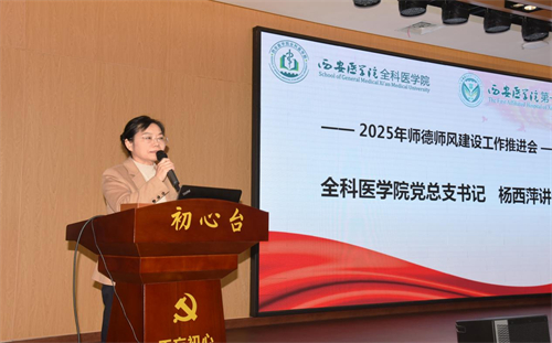 全科医学院党总支书记杨西萍总结讲话。她强调,师德师风是医教事业的灵魂,关乎医学人才培养质量和患者就医体验。结合学校发展规划与工作实际,她提出五点要求:一是以党建为引领,筑牢教师思想根基,将师德教育融入党组织生活;二是以规范为遵循,强化教师行为自觉,严格落实教风建设十条举措;三是以典型为标杆,营造崇尚师德的优良氛围,让优秀教师事迹广泛传播;四是以问题为导向,补齐工作短板,针对调查反馈制定精准整改措施;五是以协同为合力,压实主体责任,要切实抓好师德建设,推动优良师风薪火相传。
