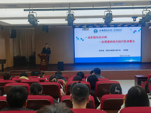2月4日,由全科医学院党政办和全科医学专业基地联合组织的全科专业基地思政教育培训顺利开展。此次培训旨在筑牢全科住培医师思想根基、强化使命担当,推动思政教育与专业培养深度融合,医务部主任安艳新以《白大褂与迷彩服:在需要的地方践行医者誓言》为题,为全体住培医师、助理全科医生以及基地教师代表带来一场兼具温度与深度的主题演讲。